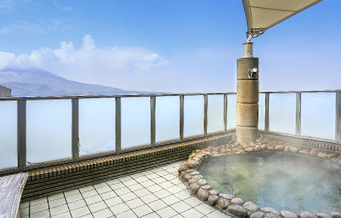 露天風呂や内湯の4箇所の各浴室からは、桜島や錦江湾の雄大な景観を楽しむことができます。