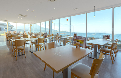 当館のレストランは、オーシャンビュー、リラックスした雰囲気で食事を楽しめます。